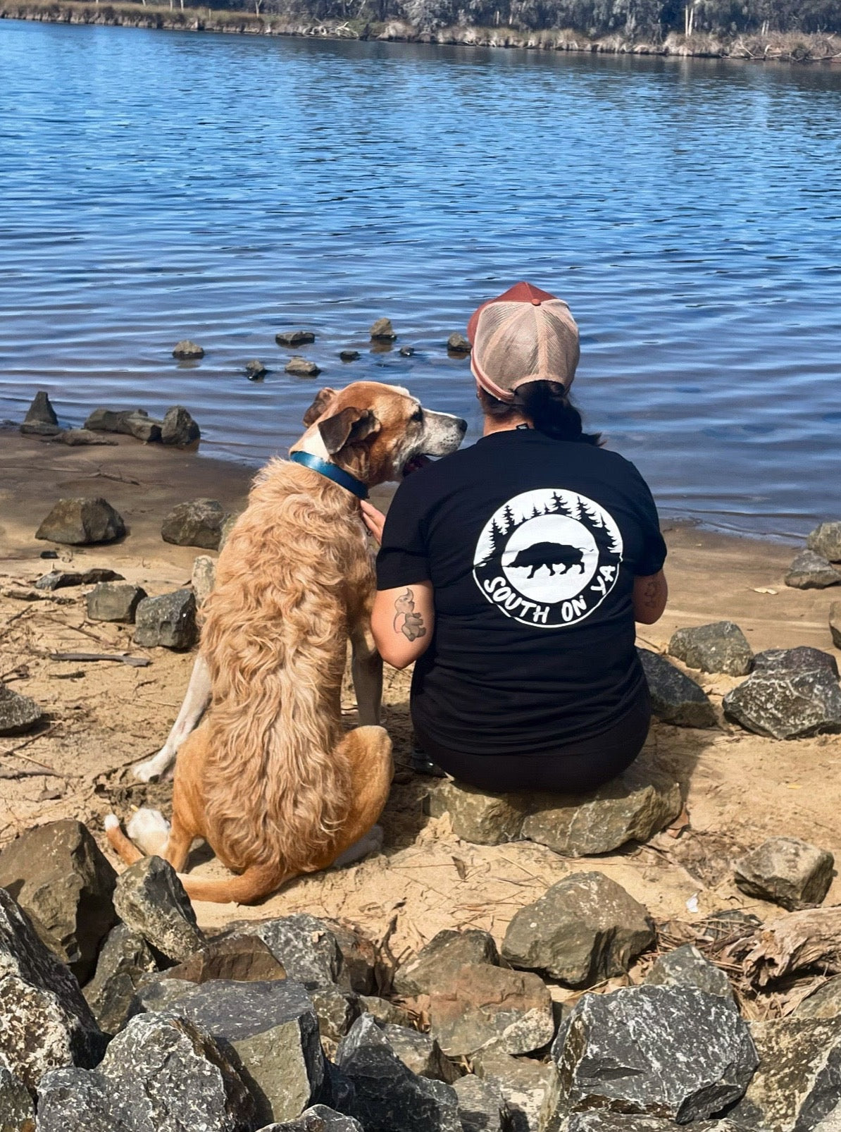 Neck ribbing, side seamed, shoulder to shoulder tape, double needle hems.